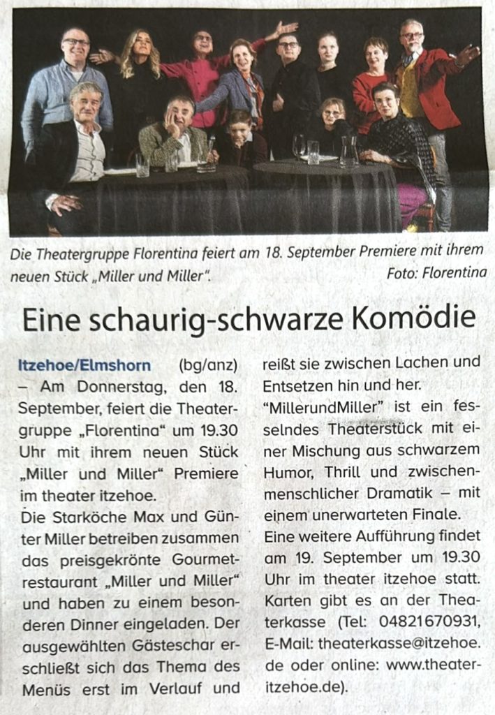 Am Donnerstag, den 18. September, feiert die Theatergruppe „Florentina“ um 19.30 Uhr mit ihrem neuen Stück „MillerundMiller“ Premiere im theater itzehoe.